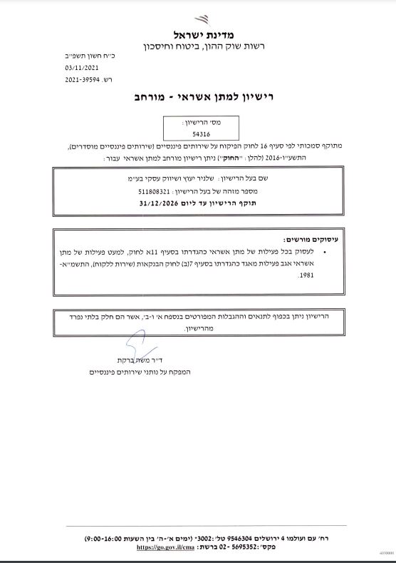 אישורים והיתרים - שלניר יעוץ ושיווק עסקי בע"מ
